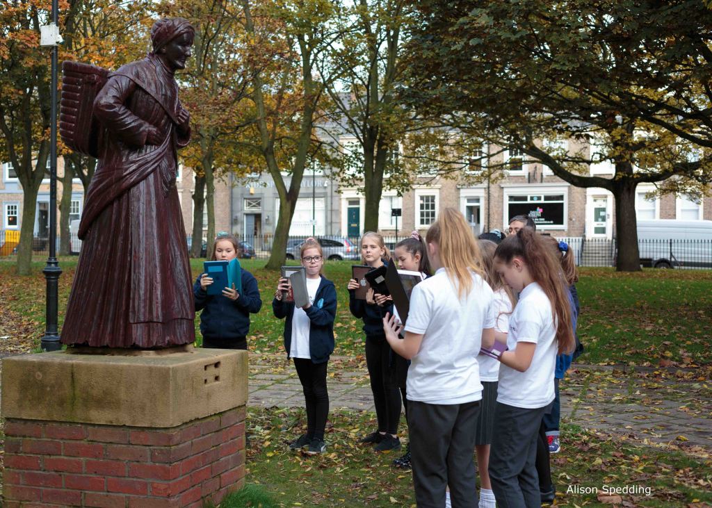 The Wooden Dolly has stood watch over Northumberland Square since 1958, but she has now been brought firmly into the 21st Century by the North Shields Heritology Project and local schoolgirls.