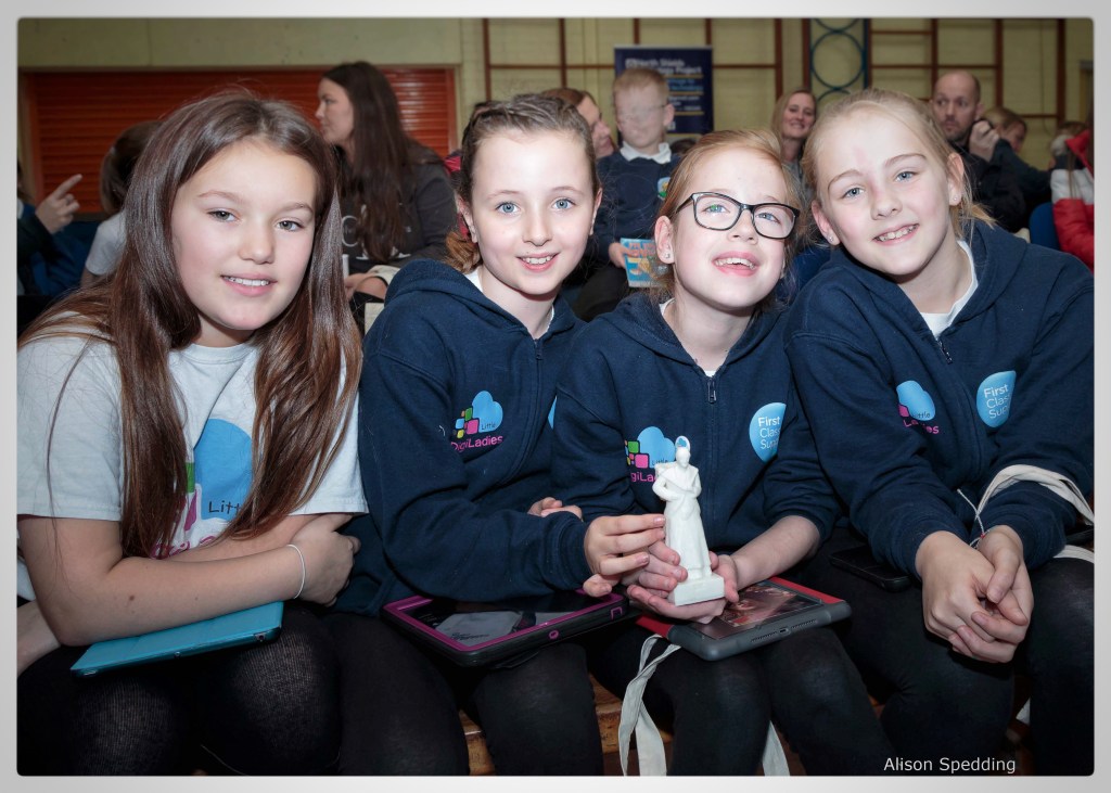 It got even more exciting as we gave the girls Tote bags courtesy of Digital Catapult North East Tees Valley and the pièce de résistance – an actual 3D resin model of the scan they created together (with the help of our Volunteer Katy Hackers)